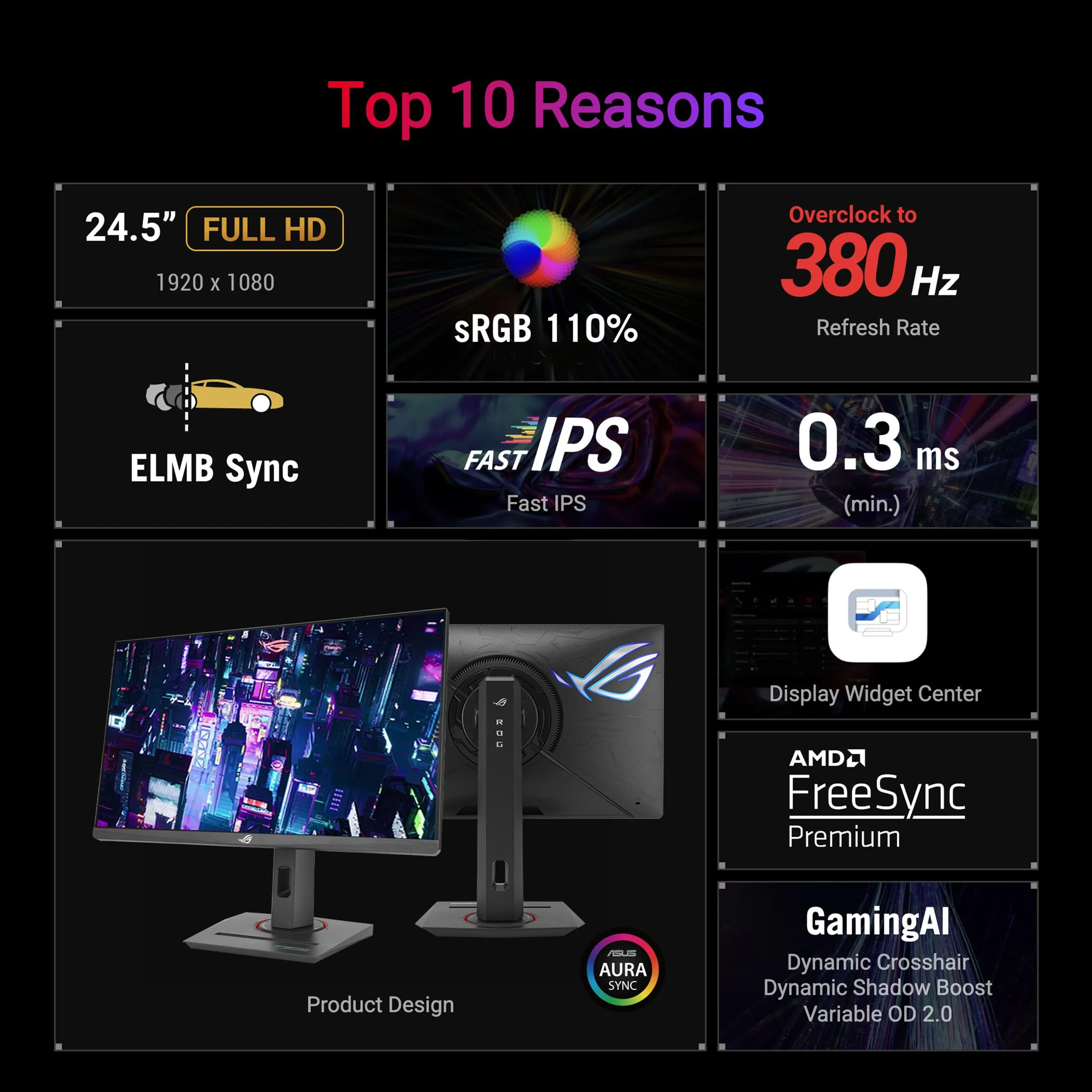 The ASUS ROG Strix XG259QNG is a 24.5-inch gaming monitor designed for eSports enthusiasts. With a Full HD resolution of 1920x1080 and an incredible refresh rate of 380Hz, it provides ultra-smooth visuals and minimal motion blur. The Fast IPS technology ensures vibrant colors and wide viewing angles, while the 0.3ms response time enhances your gaming experience by minimizing ghosting. This monitor supports Extreme Low Motion Blur Sync and FreeSync Premium for tear-free gaming. Enjoy AI gaming features and a 3-year warranty for peace of mind.