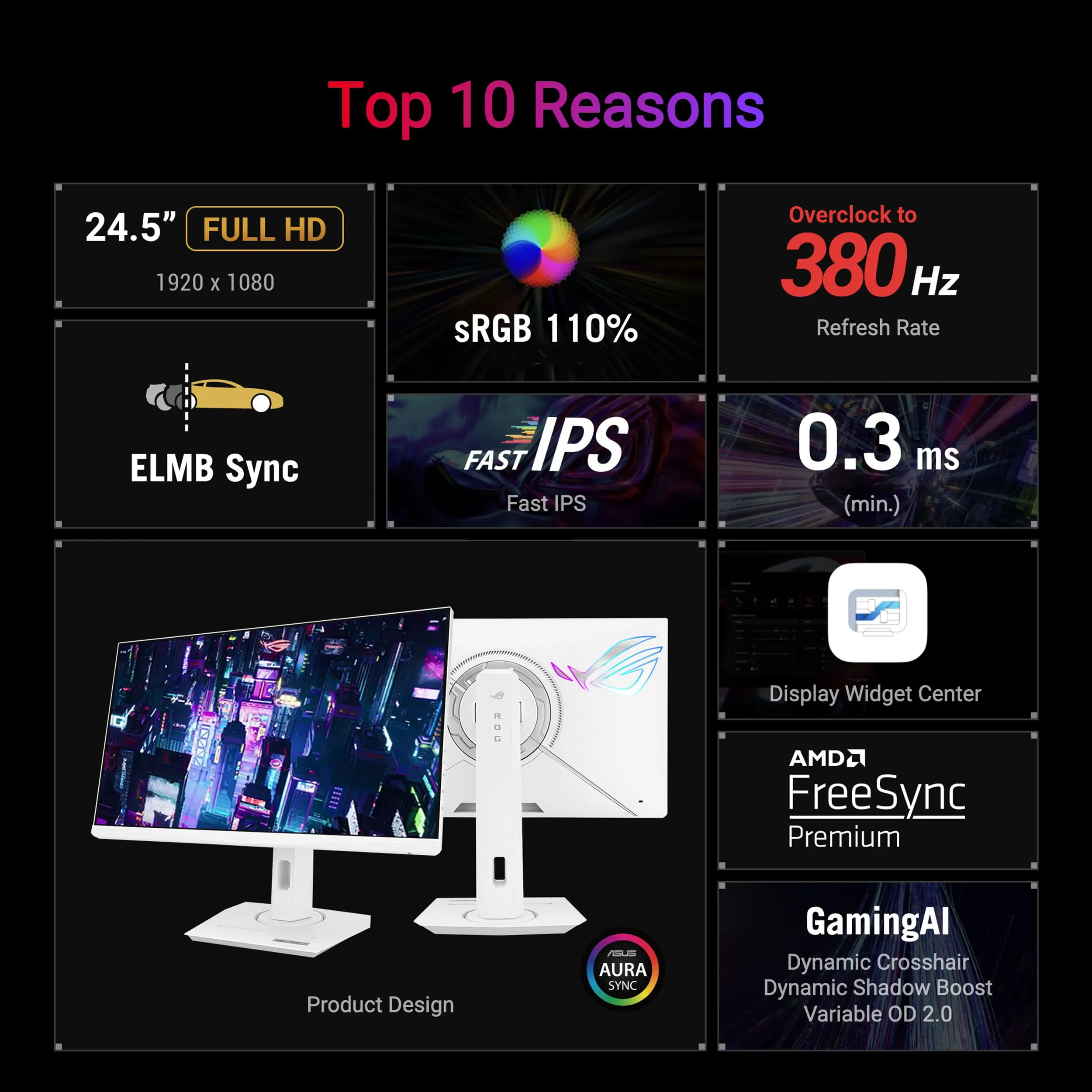 Backed by a 3-year warranty, the ASUS ROG Strix XG259QNG-W is built to endure the demands of intense gaming sessions.