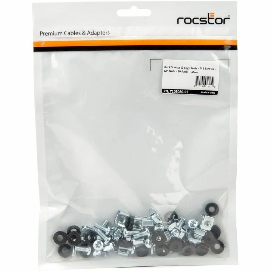 PREMIUM M5 RACK CAGE NUTS - 20 PACK SILVER - M5 NUTS 20 SETS OF CABINET MOUNTING