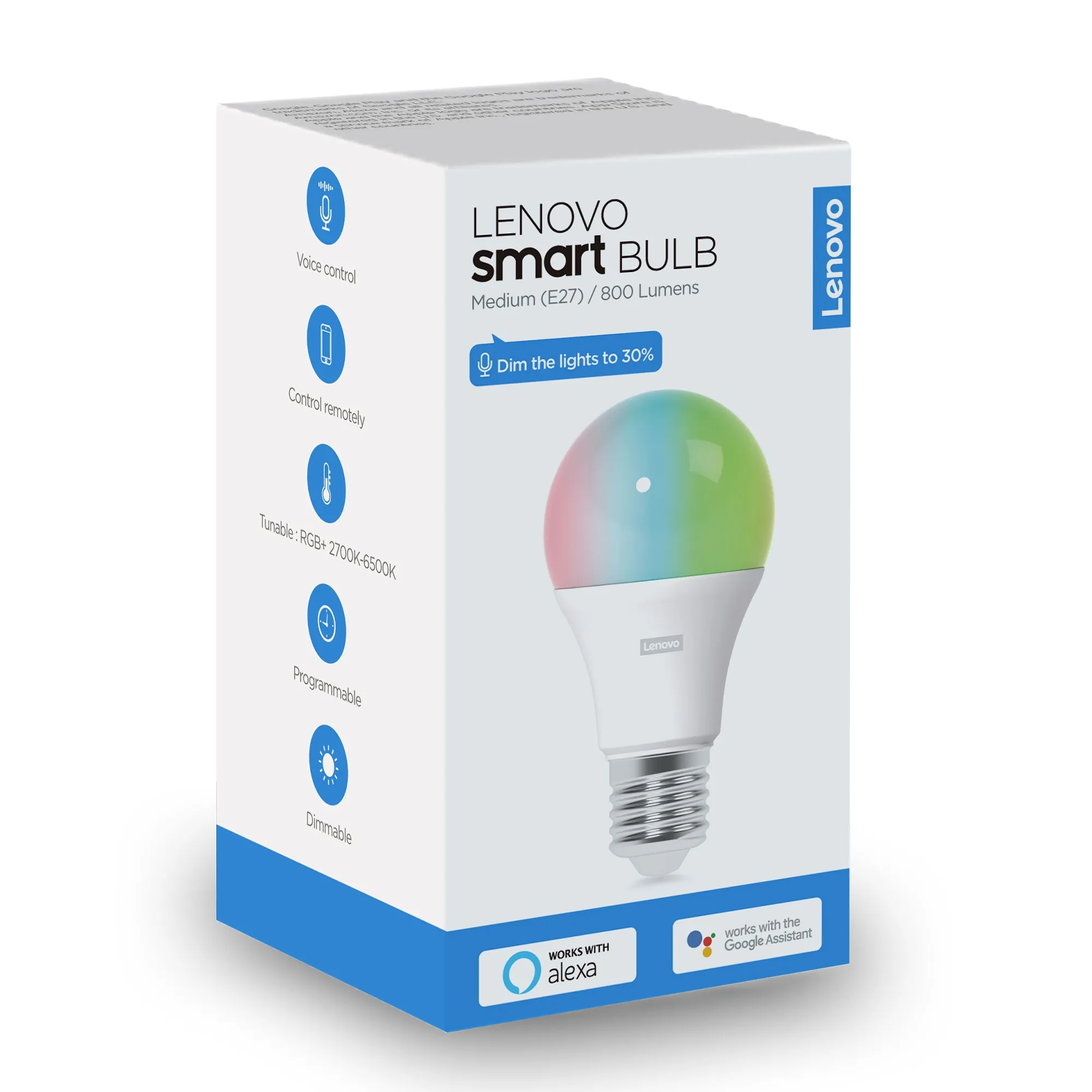 The Lenovo Smart Color Bulb allows you to create the perfect ambiance in your home with a variety of colors and adjustable brightness. Control the bulb remotely via your smartphone or set schedules for convenience. Perfect for enhancing your space for any occasion.