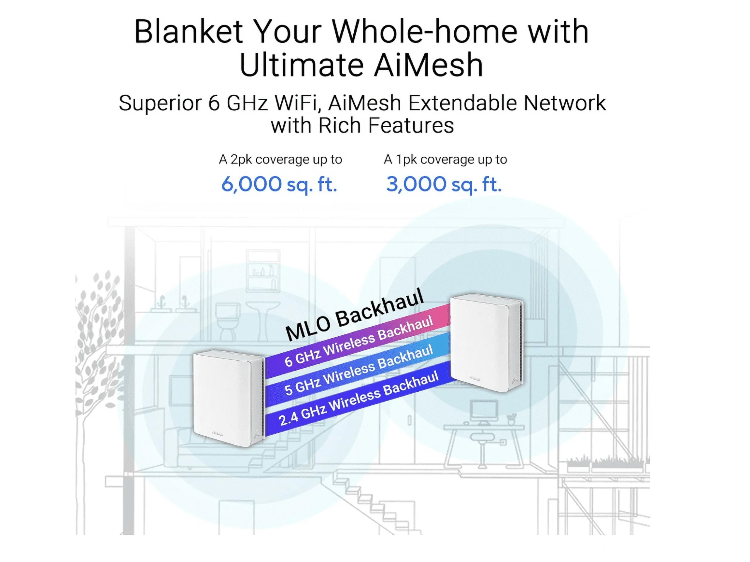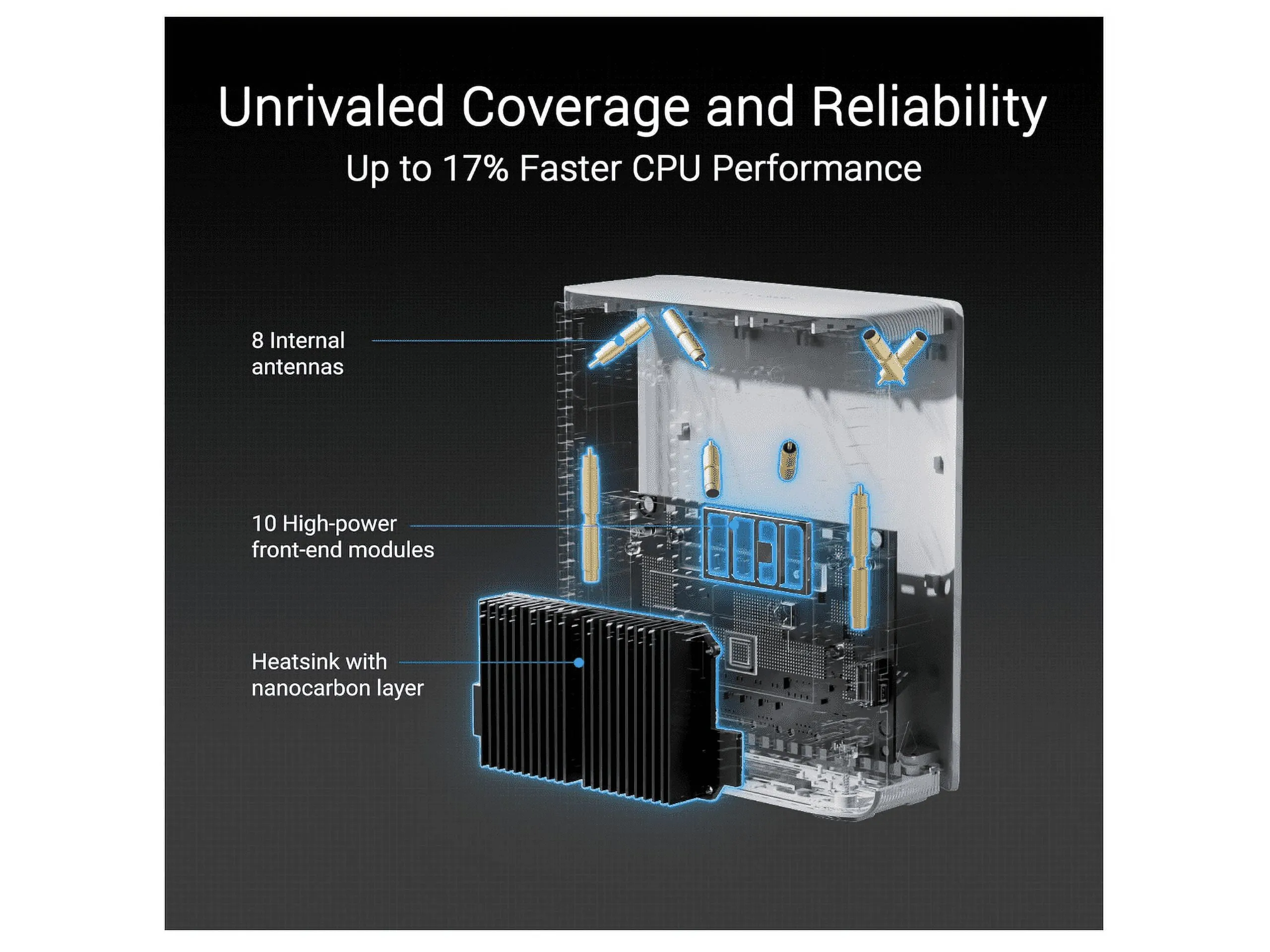 Experience lightning-fast internet with the ASUS ZenWiFi BT10 Tri-band WiFi 7 Mesh system. With a remarkable speed of up to 18 Gbps and coverage for up to 6000 sq. ft., this system ensures seamless connectivity throughout your home.