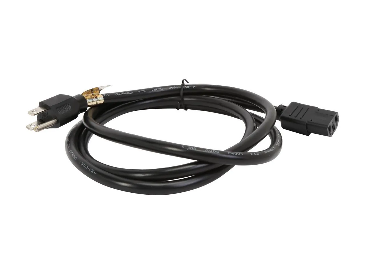 6ft AC Power Cord, C13/5-15P 125V, 15A, 14Awg SJT: Use Tripp Lite's P007-006 in server applications that require a higher rated, heavier gauge cable. C13 to 5-15P connectors, 3 x 14 AWG conductors, 15A / 250V rating. Tripp Lite Lifetime Warranty. Molded, Heavy-Duty Power Cable, 6 ft. IEC-60320-C13 to NEMA 5-15P. 14 AWG x 3C, SJTW, 15A, 250 Volt. UL, CSA, VDE, RoHS Compliant.