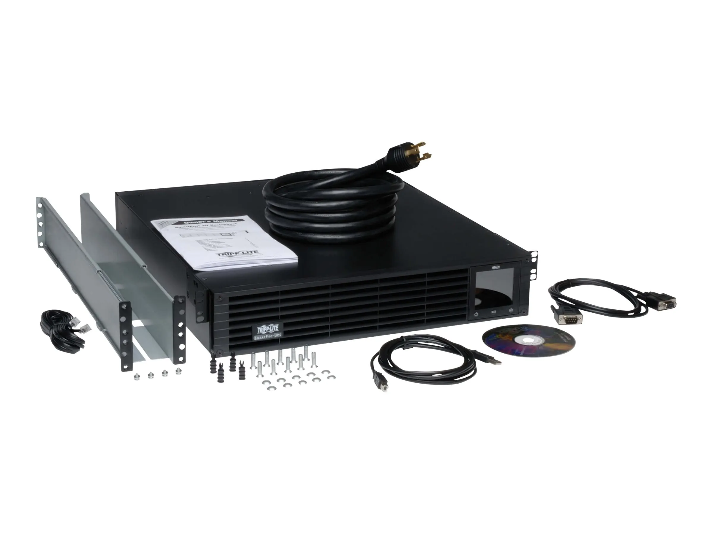 Receptacles: 8 x NEMA 5-15/20R, 1 x NEMA L5-30RSwitching Time: 5 msLoad Capacity (VA): 3000 VALoad Capacity (Watt): 2880 WInput Voltage: 110 V ACOutput Voltage: 120 V ACBackup/Run Time (Full Load): 3 MinuteMaximum Battery Recharge Time: 5 HourHeight: 3.5"Width: 17.5"Depth: 19"Rack Height: 2UForm Factor: Rack-mountableWeight (Approximate): 64 lbPackage Contents: SmartPro SM3000RMXL2UTAA 3000VA Rack-mountable UPS,PowerAlert Software with USB,DB9 and EPO cabling,4 x post rackmount installation accessories,Owner's manual with warranty information,Environmentally Friendly: YesEnvironmental Certification: RoHS, ENERGY STARLimited Warranty: 2 YearTripp Lite's SM3000RMXL2UTAA is compliant with the Federal Trade Agreements Act (TAA) for GSA Schedule purchases. This product is ENERGY STAR qualified for its ability to save customers money while helping to protect the environment. Tripp Lite SmartPro Line Interactive UPS with enhanced LCD interface offers network-grade power protection for critical server, network and telecommunications equipment. Line Interactive Uninterruptible Power Supply (UPS) with built-in Auto-Voltage Regulation (AVR) actively corrects brownouts and overvoltages back to usable levels while maintaining a full battery charge in case of power failure. Tripp Lite's unique configuration excels in exceptionally poor-power environments with two separate levels of voltage boost to correct both slight undervoltages and severe brownout conditions. Interactive LCD/LED interface reports UPS operating mode, detailed UPS and site-power data, plus enables a variety of UPS setup and configuration options. Super-fast switchover from line to battery power occurs within milliseconds to maintain operation of connected equipment without interruption or reboot. 96% line-mode efficiency offers reduced heat emissions and operating costs. Network management interfaces support communications via USB, RS-232 and optional SNMPWEBCARD network interface. HID-compliant USB interface enables integration with built-in power management and auto shutdown features of Windows and Mac OS X. Network communications ports enable detailed monitoring of equipment load levels, self-test data and utility power conditions. Includes PowerAlert monitoring software and complete cabling. Switched output load banks enable scheduled and real-time remote reboot and load shedding of select outlets. Emergency Power Off (EPO) interface. LED/LCD display panel easily rotates for viewing in rackmount or tower configurations. Audible alarm with push-button momentary alarm-cancel and silent-mode configuration options. Programmable self-test. Field-replaceable, hot-swappable battery modules.