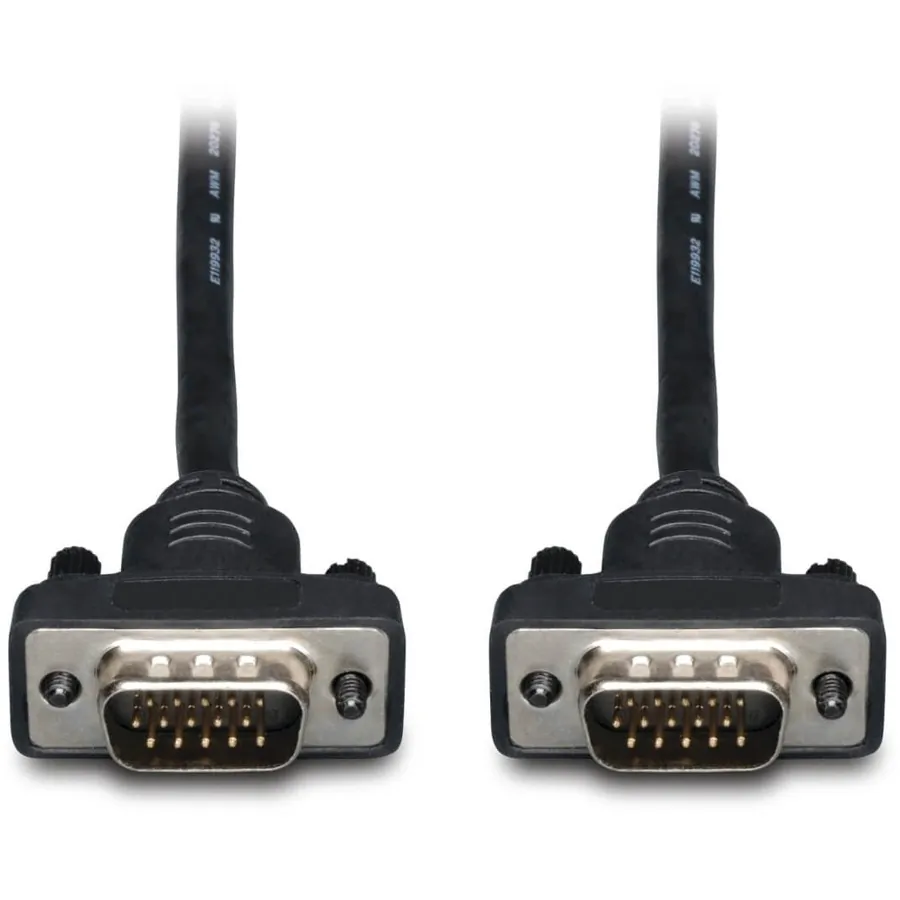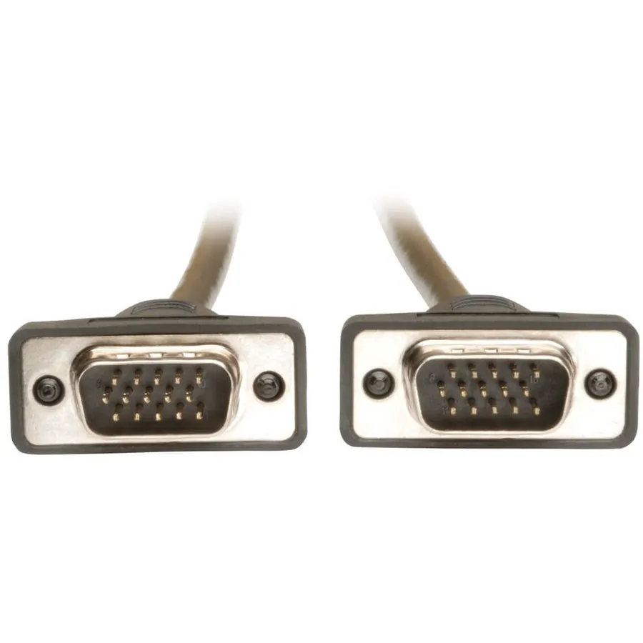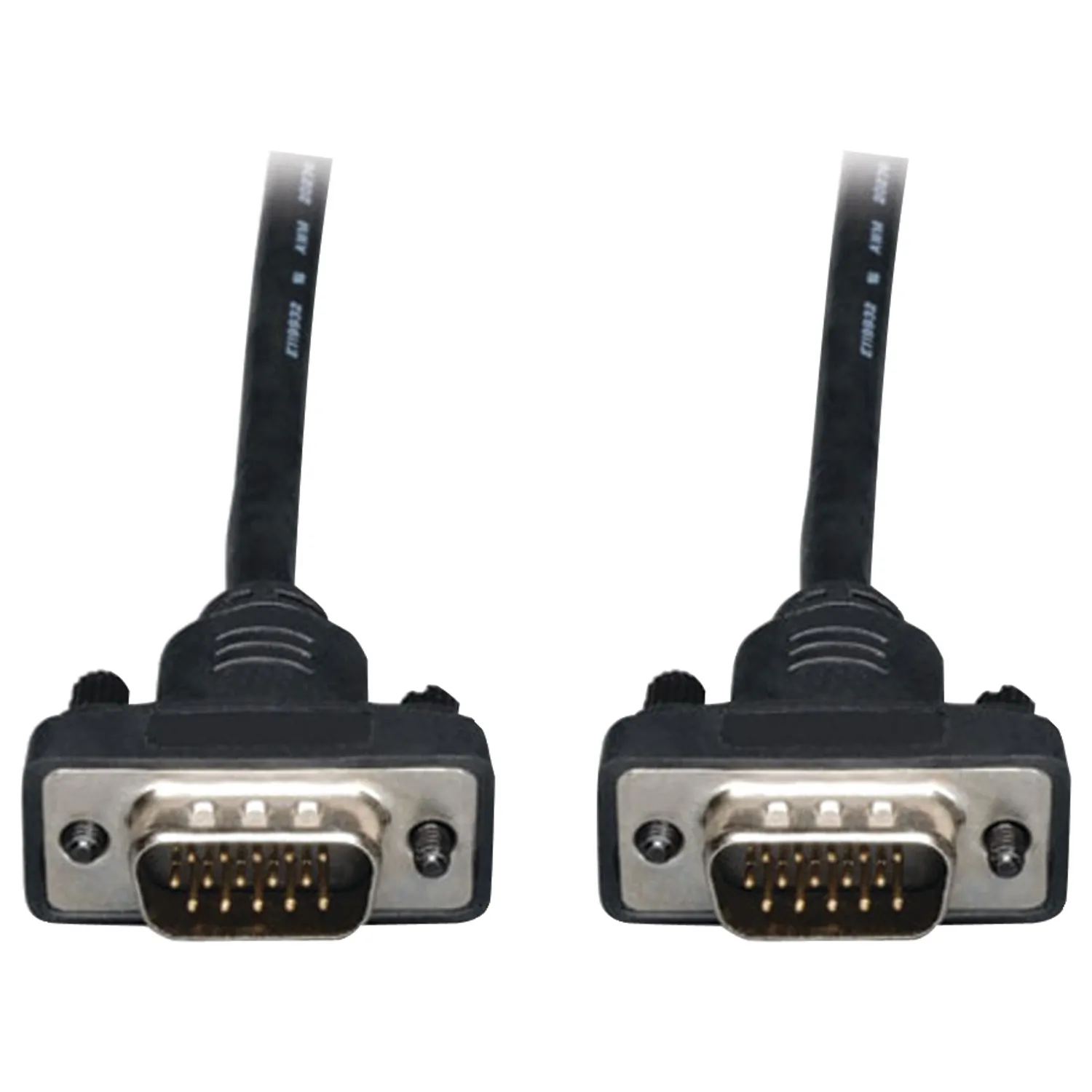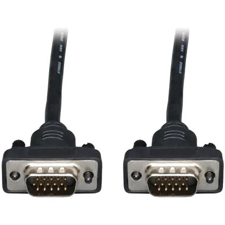 Tripp Lite's 6-ft, PVC, SVGA / VGA Compact monitor replacement cable, features a 40% reduced diameter cable, and smaller molded connectors. The mini-coax (RGB) and paired video wire construction delivers superior video signal quality, up to 2048x1536. Nickel plated connectors and gold plated copper contacts ensure excellent conductivity. Double shielding (foil and braid) provides maximum EMI/RFI protection. Both high density DB15 male connectors are molded and have integral strain relief to ensure long life. Tripp Lite warrants this product to be free from defects in materials and workmanship for life. Key Features Slim, compact SVGA / VGA Male - Male Cable, 6ft 40% thinner cable than standard VGA Cables Smaller, more compact, molded ends than standard VGA cables Supports up to 2048x1536 Resolution Foil and Braid shielded for superior noise suppression Package Includes 6-ft, Compact SVGA / VGA M/M Monitor Cable