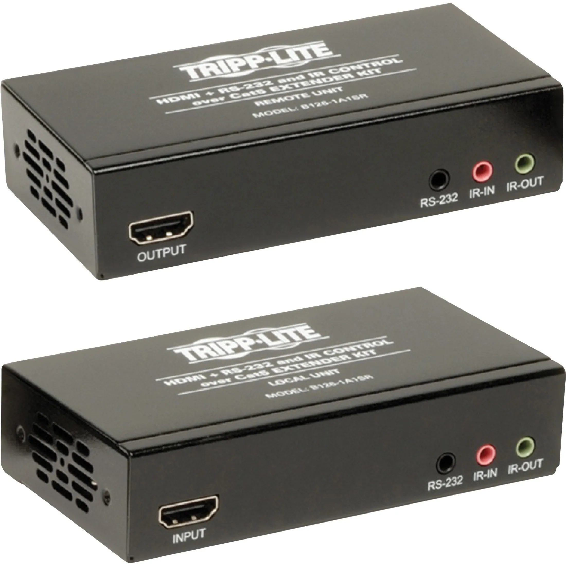 Extender kit features a transmitter unit and a receiver unit to extend your HDMI audio and video when the source is located farther than conventional cables allow. Plug-and-play technology makes installation quick and simple - with no software or drivers to install. You can extend a 3840 x 2160 (4K x 2K) Ultra High Definition (UHD) signal at 24/30Hz up to 328' with a single Cat6a cable, up to 230' with a 24 AWG solid-wire Cat6 cable, and up to 150' with a 26 AWG solid-wire Cat5e cable (N001- and N002-Series). For extending computer video resolutions of 1920 x 1200 at 60 Hz or high-definition video resolutions of 1080p at 60 Hz up to 328', use a single 24 AWG solid-wire Cat5e/6 cable. You can also control RS-232 serial devices, such as touch-screen displays or scanners, at baud rates up to 115 Kbps. Kit supports 7.1-channel surround sound, DTS-HD and Dolby TrueHD audio, as well as 3D video and HDCP.Tripp Lite HDMI + IR + Serial RS232 over Cat5 Cat6 Active Video Extender TAA GSA