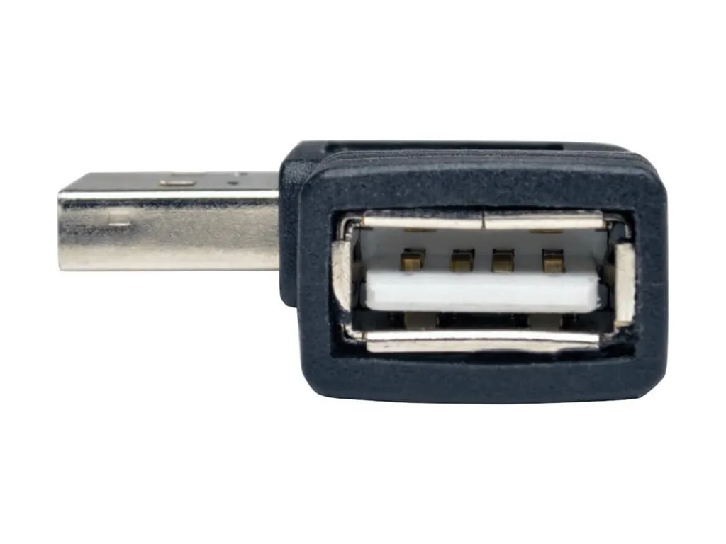 This USB 2.0 adapter allows for a right-angle connection between USB-A devices. It's perfect for tight spaces where a standard connection won't fit.